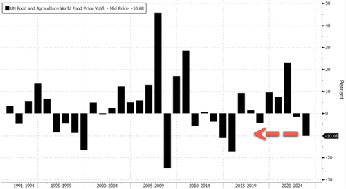 The latest United Nations' Food and Agriculture Organization data shows global food prices have just recorded the biggest annual decline since 2015. This is terrific news for emerging market countries whose governments have been battling high food inflation with mounting risks of social instability.