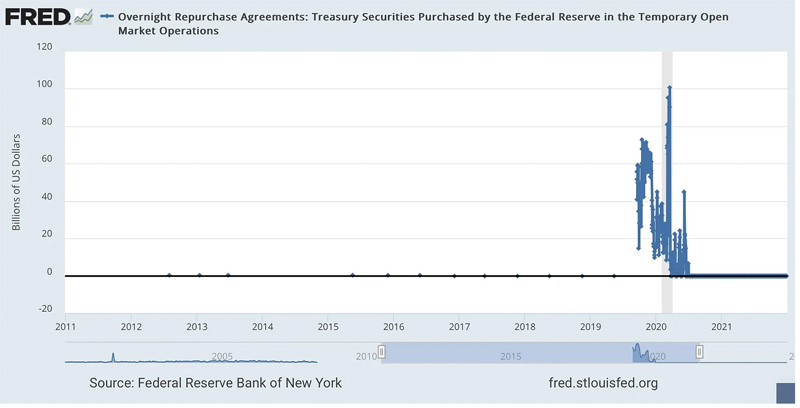 Notice that, for years prior to that explosion out of nowhere, there are mere blips of activity spikes along the way—very, very tiny spikes from a rate that is otherwise so low, if it happens at all at the Fed, that it is invisible along the bottom line—prior to the hugely eruptive crisis. Then, in September of 2019, we got this enormous explosion in the normally sanguine repo market, which was when activity and interest rates hit levels heretofore unseen. It was a huge crisis, and it only ended when the massive Covidcrisis QE finally shoved reserves back up to where they moved out of trouble in 2020.