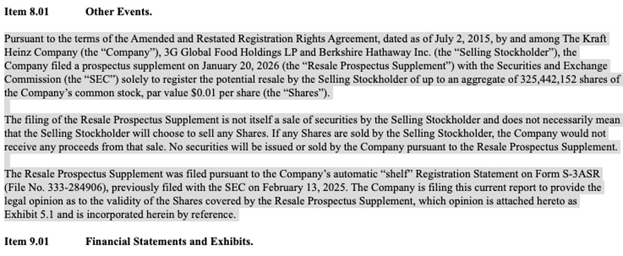 Kraft Heinz's permission to sell is not an actual sale. No shares have been sold as a result of this filing, and Berkshire is not obligated to sell anything.