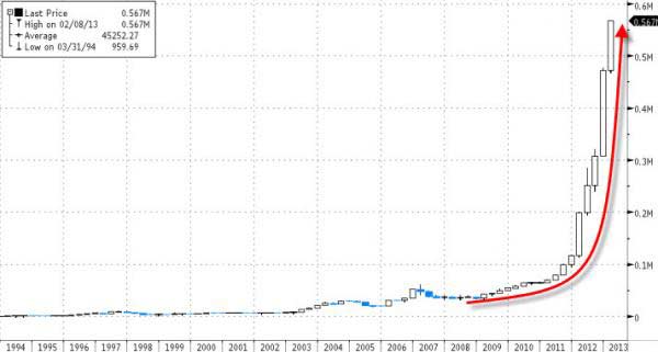 While the rest of the developed world is scrambling here and there, politely prodding its central bankers to destroy their relative currencies, all the while naming said devaluation assorted names, "quantitative easing" being the most popular, here comes Venezuela and shows the banana republics of the developed world what lobbing a nuclear bomb into a currency war knife fight looks like:
