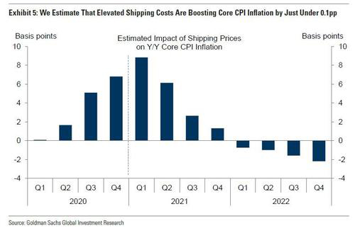 Taken together, Goldman estimates that elevated shipping costs are currently boosting year-over-year core consumer price inflation by roughly 9%!