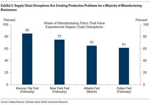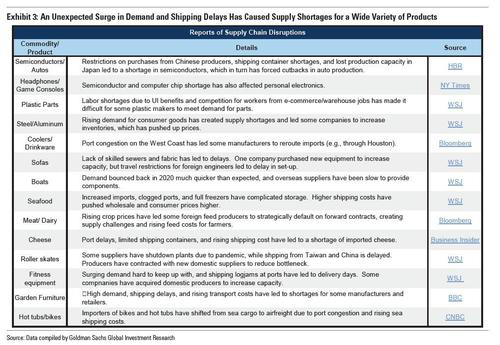 If that wasn't enough, to better understand the cause of supply chain disruptions, in a recent report from Goldman Sachs the bank summarizes recent media reports on disruptions.