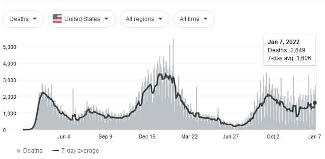 There has been no fair and balanced reporting about this pandemic of the ignorant by anyone in the corporate media, beholden to Big Pharma advertising revenue and the bottomless pot of funds (from unborn generations) dished out by the government for the never-ending fear mongering covid marketing campaign. The fear porn has been ratcheted up to obscene levels by the covid pimp Fauci and his journalistic $2 whores in the mainstream media. What you will only find out in the alternative truth telling media is omicron 3.0 is a dud, no worse than a common cold and less lethal than the annual flu. Luckily for the ruling elite, math, common sense, and critical thinking are not strong points among the ignorant masses. They are attributing 1,600 deaths per day to covid with cases at 700,000. Last January they were attributing 3,300 deaths per day with cases at 250,000. The death rate is 85% lower than a year ago. Why don’t we hear this being reported by Tapper, Maddow, and the rest of the mainstream media toadies? Because it doesn’t fit the approved Globalist Great Reset narrative and agenda.