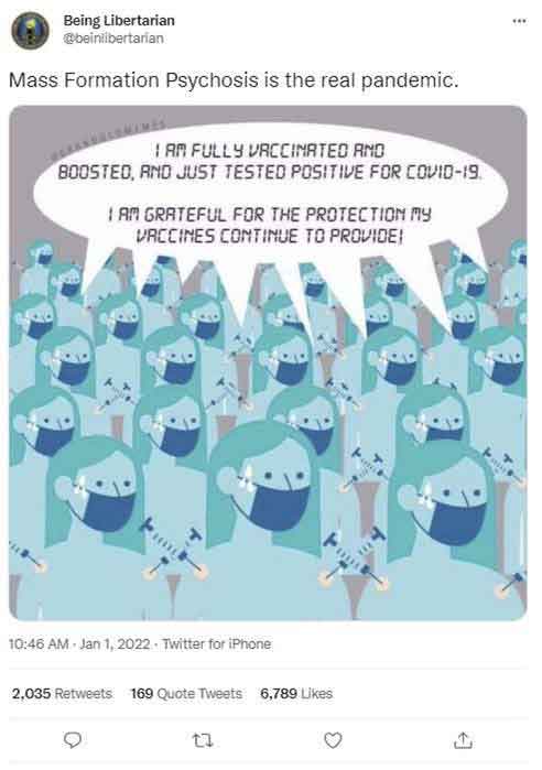 The Roaring 20’s madness led to the Great Depression, which led civilized people to allow their leaders to sacrifice the lives of 65 million people in a war with no real purpose. The Civil War Fourth Turning saw over 600,000 men killed in four years of brutality as citizens of the same country were convinced to kill each other over state’s rights, slavery, or whatever narrative the ruling class needed to accomplish their goals. People are driven mad by greed, anger, or fear on a regular basis, so Twitter, Reuters, and the Associated Press are once again spreading misinformation in a frantic inept attempt at discrediting the highly credible Robert Malone and Joe Rogan, who are swaying the masses back towards regaining their senses. The herd went mad over the last two years, but with truth tellers like Malone, Rogan and hundreds of other intelligent patriotic Americans, the deceit being perpetrated upon the world by evil men will be revealed and defeated.