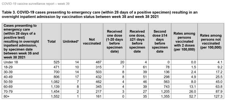 Here’s the hospitalisations table from the UKHSA Week 39 – Vaccine Surveillance Report –