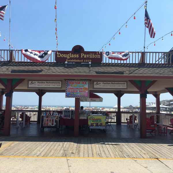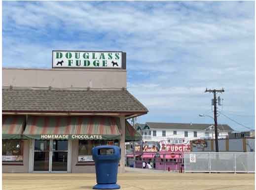 Checkout time was 10:00 am on Sunday, but the weather was perfect, so we wanted to hang around and enjoy it as long as possible. The temperature was 72 in Wildwood, with an ocean breeze, while it was 95 degrees and humid at home. We took a long walk on the beach and made our way back onto the boardwalk, as we planned to get some lunch before heading home. About a block from where our old condo is, there is the Douglass Fudge Pavilion where there were two empty Adirondack chairs with our names on them. We decided to sit back and take in the sights on this beautiful spring day.