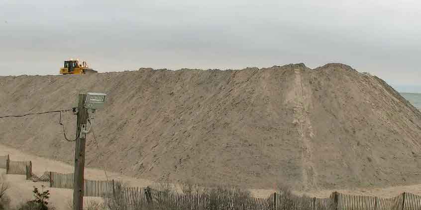 Of course it’s easier to see when there isn’t a five story pile of sand in front of your hotel and the beach access is blocked off. It’s normally peaceful when there aren’t dump trucks and other heavy machinery operating from 6:00 am until 4:00 pm. It’s also quieter when your ghetto neighbors in the next room aren’t blasting their music at volume 11. It seems the North Wildwood authorities attempt to defeat Mother Nature every year by replenishing the beach that washes away every winter during coastal storms. So they pile up tons of sand and truck it up and down the North Wildwood beaches all spring, trying to create a decent sized beach by Memorial Day. It’s not working so well this year.