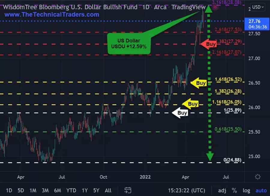 In addition, the impact of inflation on the global consumer will lead to a pullback in consumer spending which will further reduce corporate revenues and profits. Combining the global currency dislocation and the economic cool off will bring on a global recession. WISDOM TREE BLOOMBERG • U.S. DOLLAR BULLISH FUND ETF • USDU • ARCA • DAILY