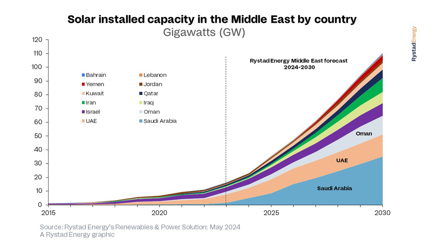 Saudi Arabia's Sudair solar project, which boasts 1.5 GW of capacity, is now fully operational, raising the country’s total installed solar capacity to more than 2.7 GW. Saudi Arabia is targeting more than 58 GW of capacity by 2030, demonstrating its commitment to boosting renewable energy power generation to its goal of 50% by 2030, up from 2% currently. However, announced solar projects only account for about 13 GW, with ongoing auctions adding an additional 5.5 GW, leaving a gap of more than 18 GW.