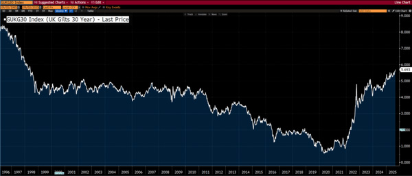 But since 2023, the opposite has happened. Central banks are holding steady or signaling cuts, while long yields have surged to their highest levels in decades.